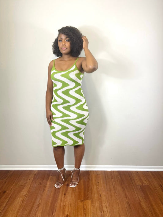 Zig N Zag Sweater Dress (Green)